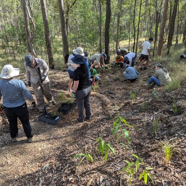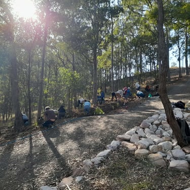 Another great turn out and what lovely weather we had too. In total we had 40 volunteers of all ages turn out for our BIG planting by the Bloodwood steps. 🌱