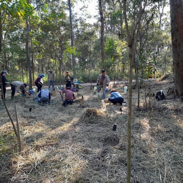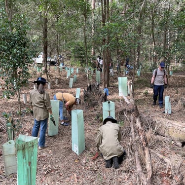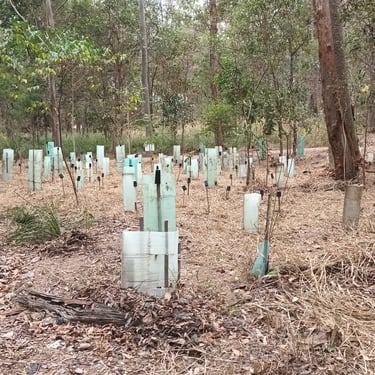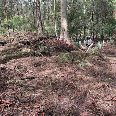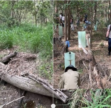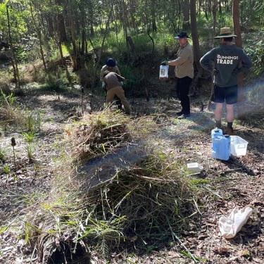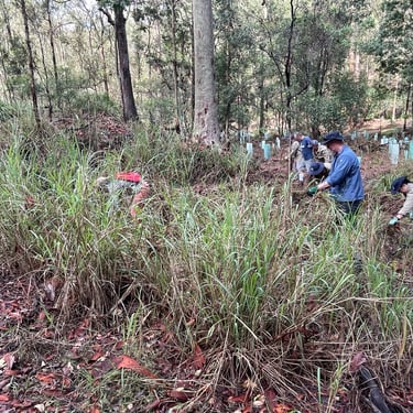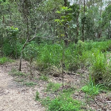 May 2023 - Stage one was to brushcut and spray a small area by the walking track. We left the grass to become mulch and in July we planted 100 Lomandra Longifolia. We had to respray the Guinea grass a couple more times as it kept reappearing, but along with that and occasional spot weeding on our working bees it is becoming less apparent a year later.