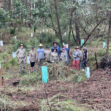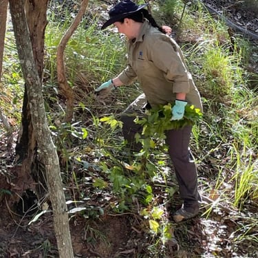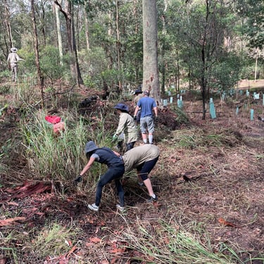 June 2024 – We continuing to weed around our new plantings and working on an area approx. 100m up the creek clearing Corky Passion Vine and planting some Lomandras. We revisited this area during our October working bee and the Corky Passion Vine had not returned! Nearly all the plantings were doing well, and they all got a drop of water.