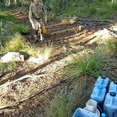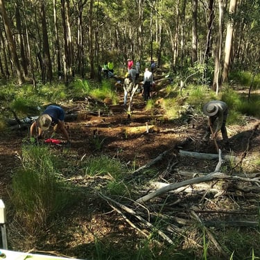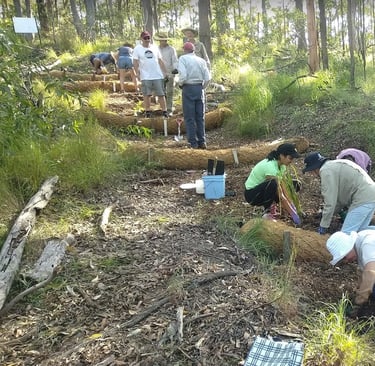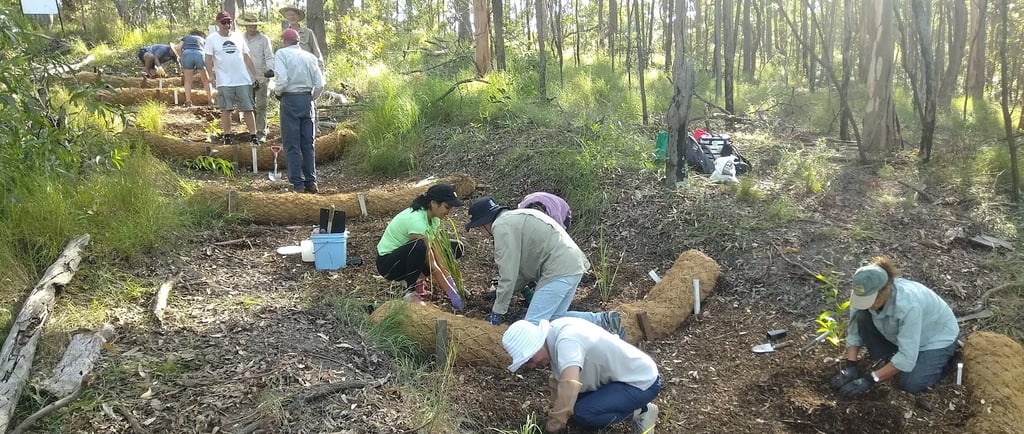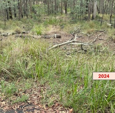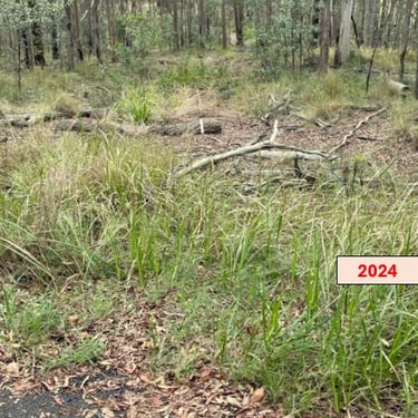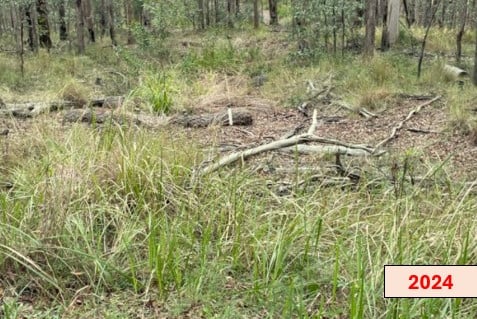 About 100 native plants were installed during our March 2022 working bee and most of them still remain today. We had hoped that 2 years later there would be a bit more cover but in this dry area nothing happens fast. Damaged tracks, especially on slopes, take years to recover.
