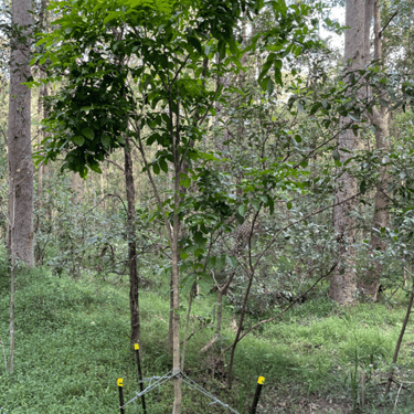 Australian Tulipwood (Harpullia pendula) is a native Australian rainforest tree known for its hardiness and fast growth. In summer, it produces small, inconspicuous greenish-yellow flowers followed by showy orange seed-cases that open to reveal glossy black seeds.