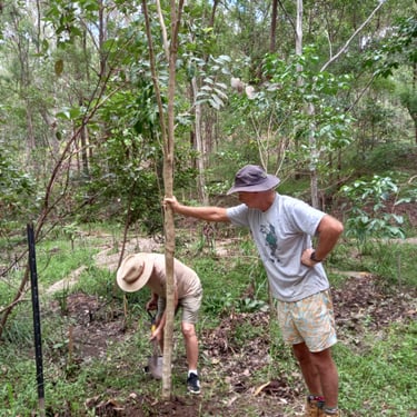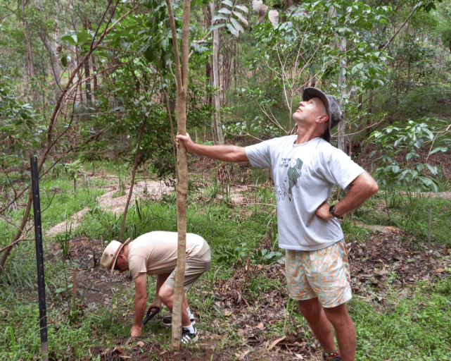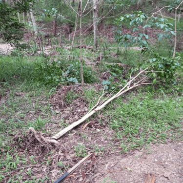 One casualty of the heavy rain, that came after the cyclone in March, was a tree that had sentimental value to our Bushcare group. The tree, a Tulipwood, planted by Harry 20 years ago was flattened by the force of the water and in need of assistance.