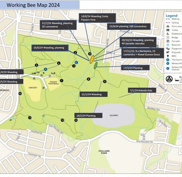 They are easy slow walks so we have lots of opportunity to lookout for local flora and fauna. We keep to the graded paths although we will encounter some gradients and steps (it's a hill). See map below for starting point.